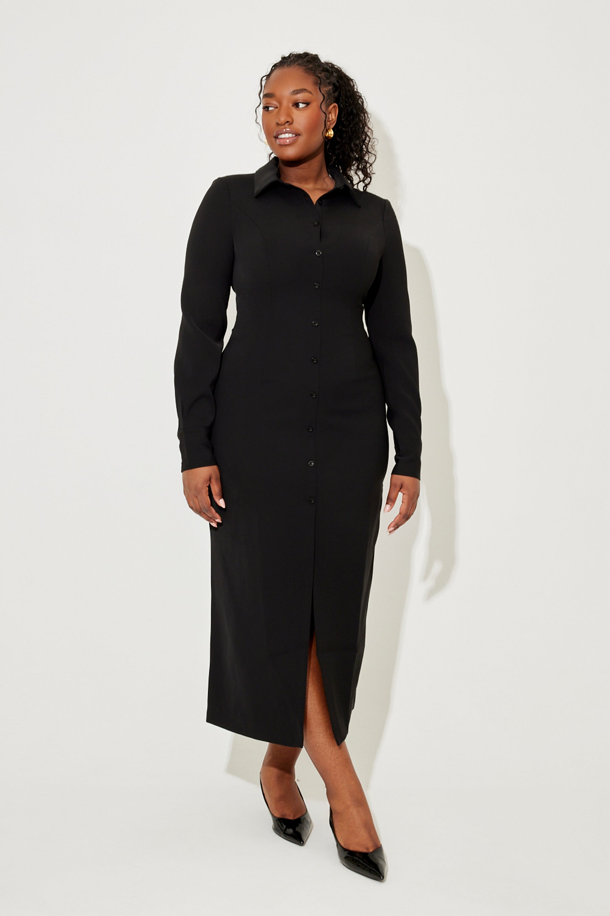 Indulge in effortless style with The Ultimate Muse Long Sleeve Collar Maxi Dress. This black, loose-fitted shirt dress takes inspiration from your favourite summer collared maxi, making it a versatile and timeless addition to your wardrobe. Elevate your look with ease, all year round.