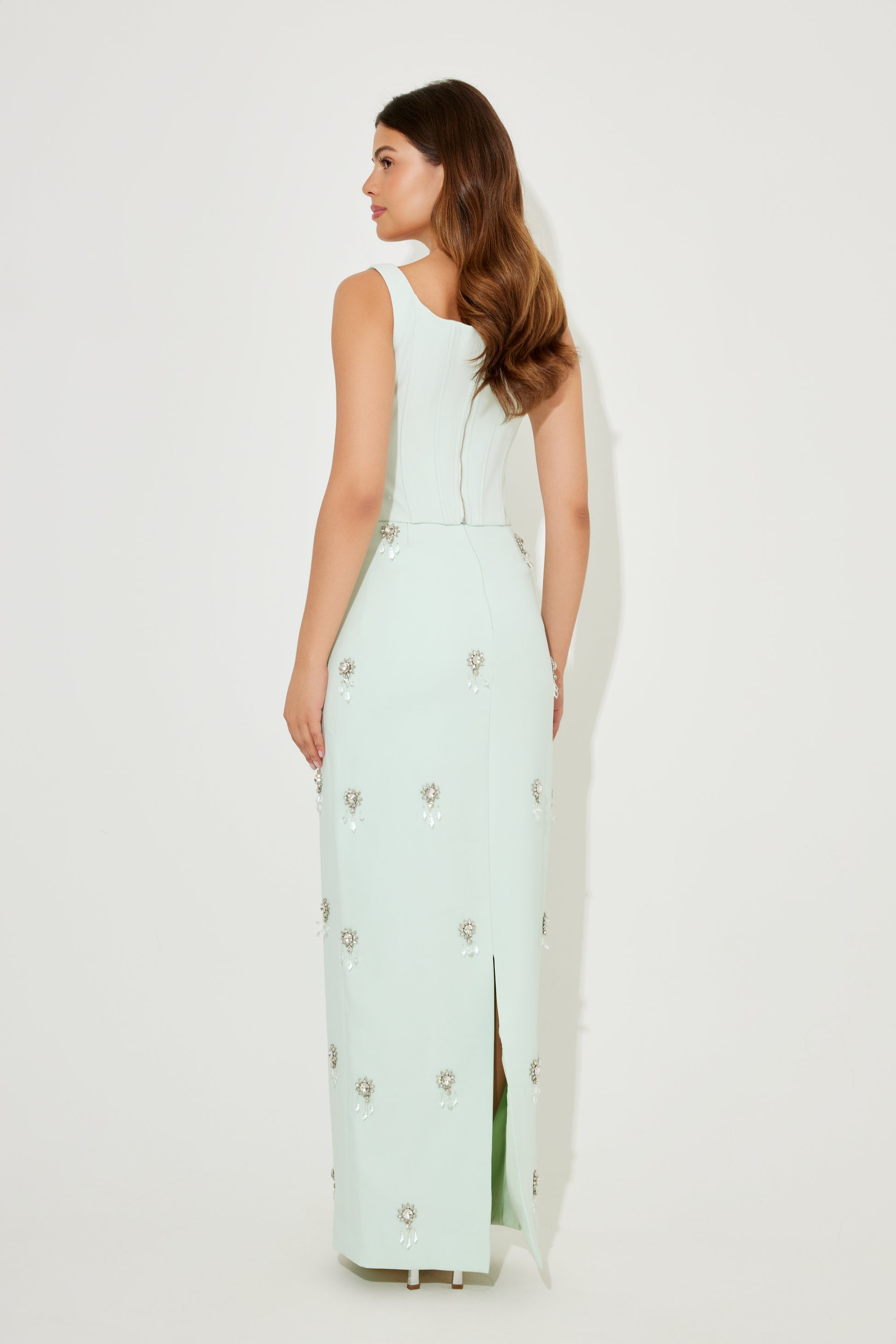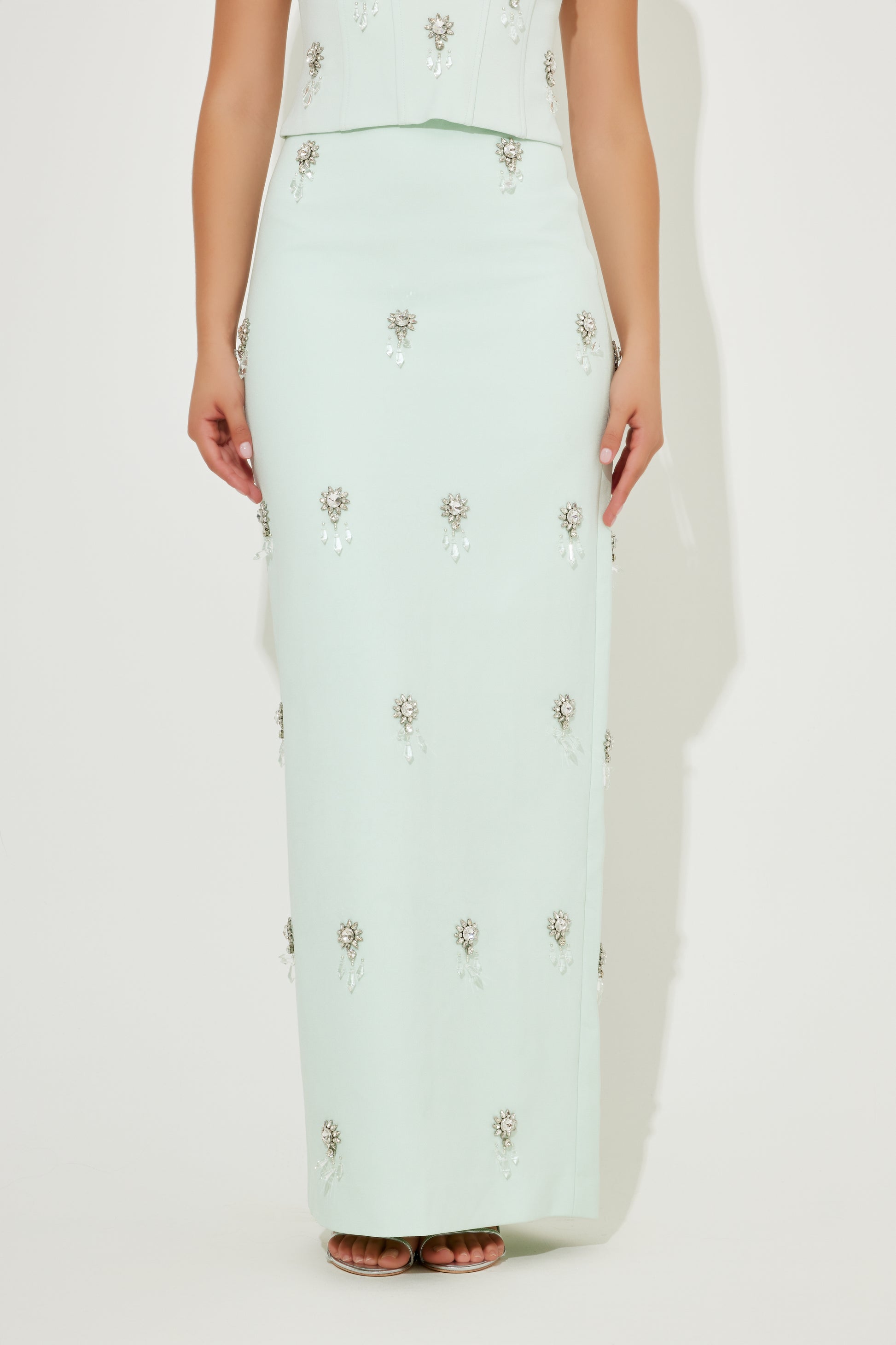 Adorned with delicately selected clusters of crystal embellishments atop a sophisticated maxi structure. Serving you the most versatile party piece to dress up or down for all your celebrations this season, pair yours with the matching corset or tee, made for your bridal party.