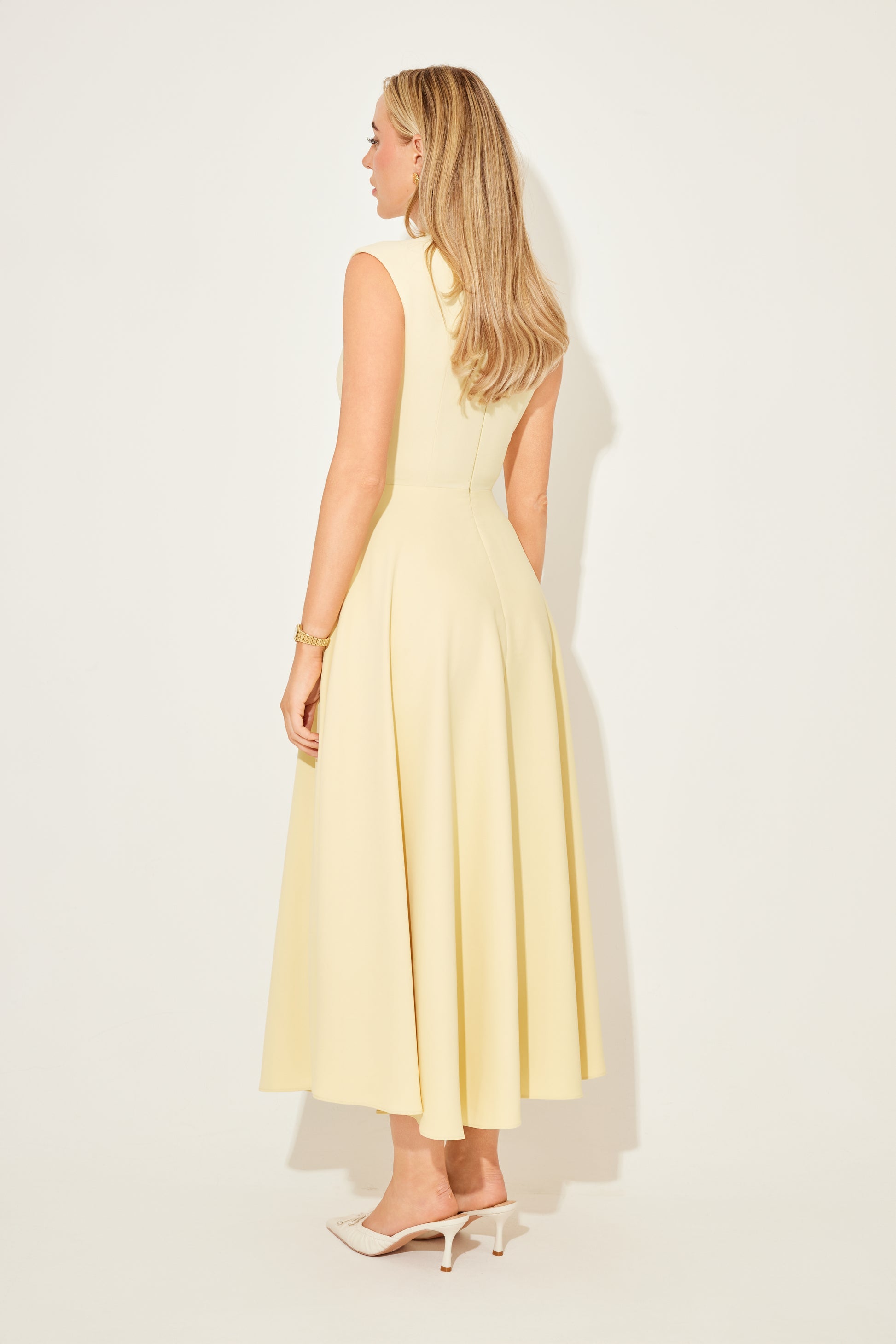 The V-shaped waistline was first curated and developed on our Founder Aimee’s trip to visit our manufacturer, crafted with an abundance of personal touches. Now in a sleeveless crisp white iteration for party season, it doesn't get more elegant than this muses.