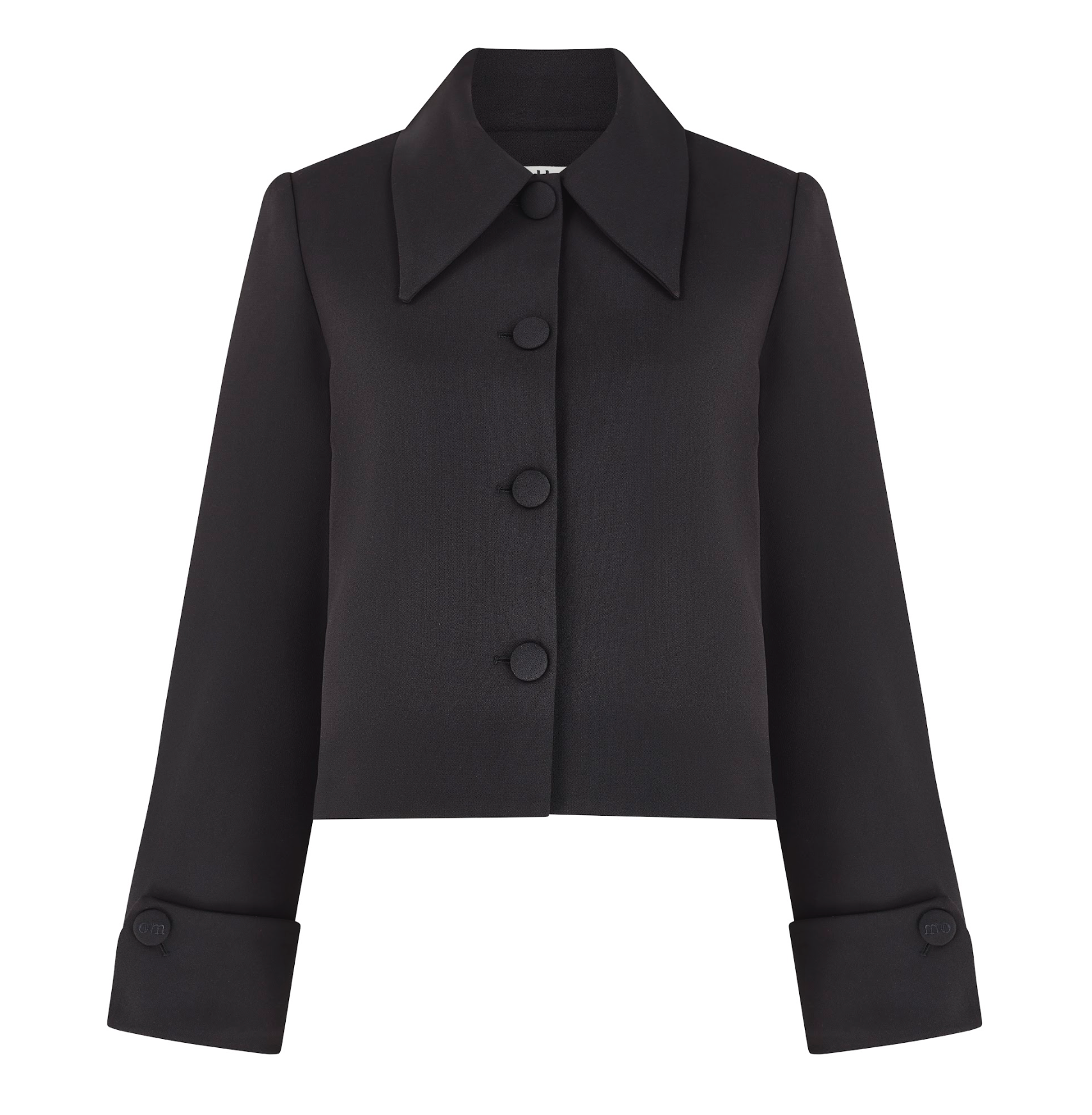 Odd Muse meets outerwear, featuring a sharp collared neckline, fitted shoulder pads, and bold oversized cuffs, designed to be timeless. Whether you're heading to the office or elevating your evening outfit, our jacket transitions seamlessly from day to night. Style with our structured sleeveless top and matching mini skirt for a modern moment that speaks volumes with minimal effort.