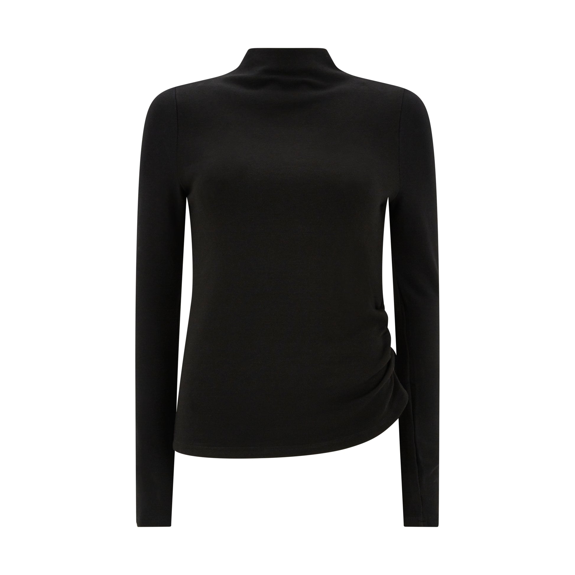 Embrace effortless sophistication with a long-sleeve asymmetric top. Designed in a luxurious, slinky knit that hugs and flatters every shape, it combines a striking high neck with an asymmetric cut for a bold yet elegant look. Perfectly modern, timeless chic.