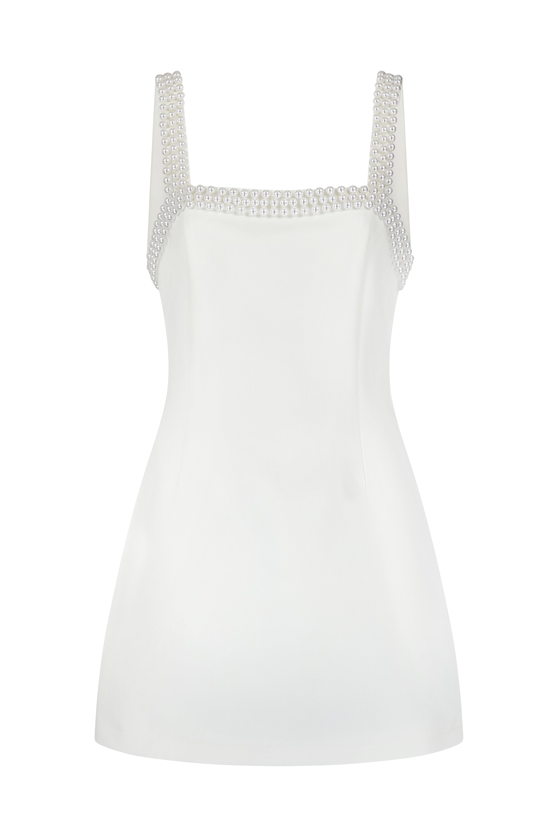 Did you think we would forget our iconic pearls? A statement for your special day and remaining a forever wardrobe staple, this piece is the epitome of breathtaking bridal wear. Cut from our long-adored signature fabric, the evolution of the pearls continues. Embracing elegance and femininity with a touch of opulence across the pearl embellishment neckline, this crisp white mini is our special iteration for our brides-to-be.