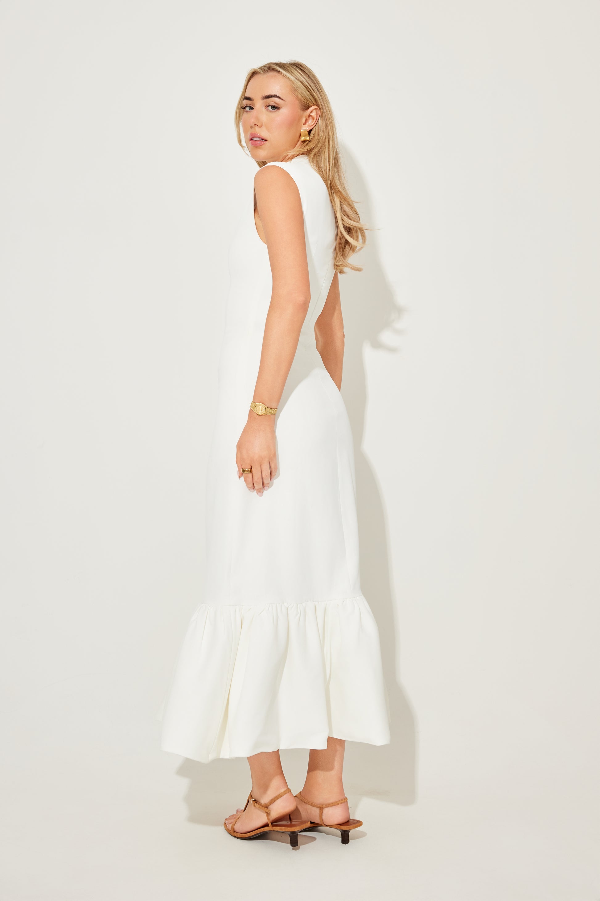 Our sleeveless midi dress brings effortless charm to any occasion. Designed with a tiered hem that sways with every step, it offers a flattering silhouette that feels as good as it looks. Lightweight and versatile, it’s the kind of piece the muses will reach for when they want a minimal yet together outfit.